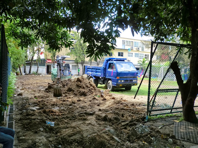 It's break, so no one needs to play soccer, right? Hopefully, at some point, it will once again resemble a soccer field rather than a construction site.