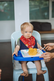 Gerrit didn't know what to do with the cake! He put one finger in it, then wouldn't touch it any more. The only way we got him to eat some was by feeding it to him with a fork (which the other kids really enjoyed helping with, actually!)